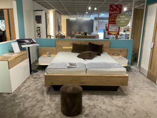 Kleiderschrank mit Passepartout und LED-Griff-Beleuchtung ,Doppelbett mit Bettschubkasten,Nachtkonsolen mit Aufsatzpaneel und LED- Beleuchtung und Schubladenkommode