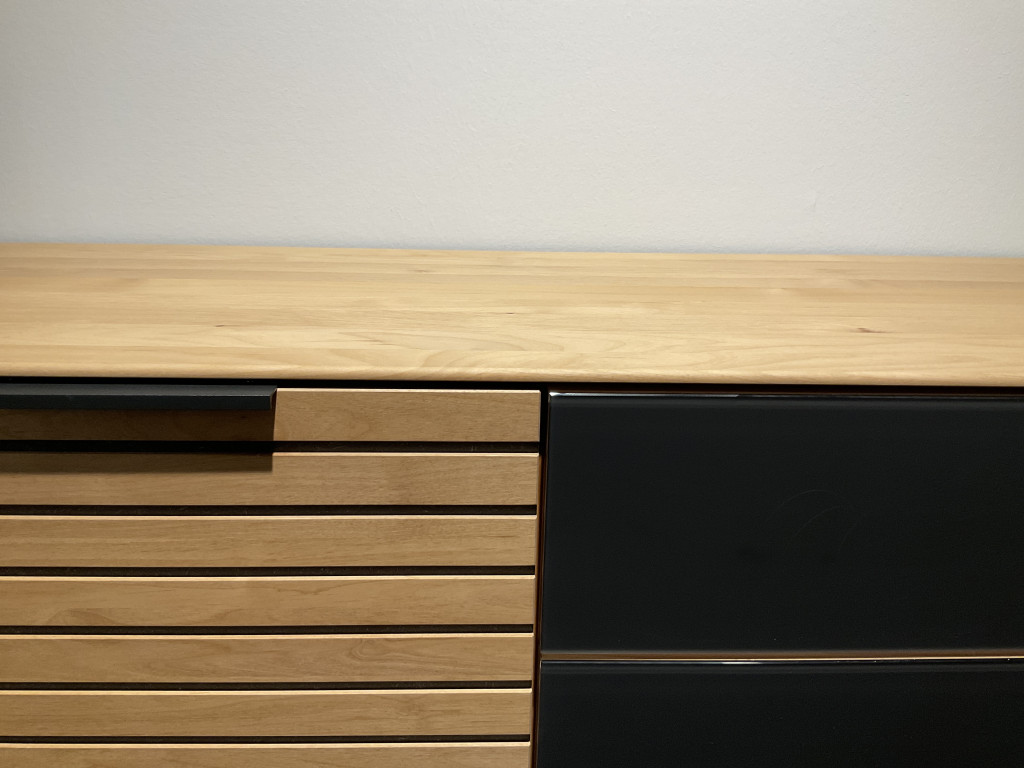 Kanadische Erle massiv Natur Mattglas CarbonB/H/T: ca. 182 x 92 x 46 cmVollauszug Sockel carbonfarbig