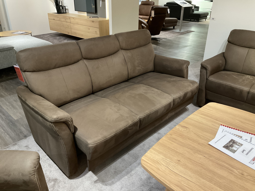 Stoff Colorado Schlamm Kontrastnaht beige. Sitzhöhe ca. 49 cm Taschenfederkern 3- Sitzer B/H/T: ca. 195 x 99 x 89 cm MIT SITZVORZUG 2- Sitzer ca. 130 cm breit Sessel ca. 80 cm breit