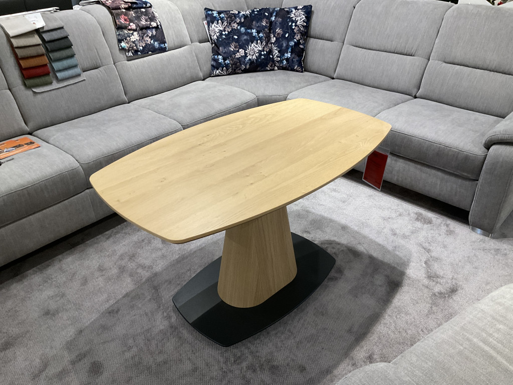 Wildeiche Eiche bianco EchtholzfurnierLiftmechanik Bodenplatte Anthrazit auf Rollen ca. 110 x 65 cm, Höhe ca. 50 - 69 cm