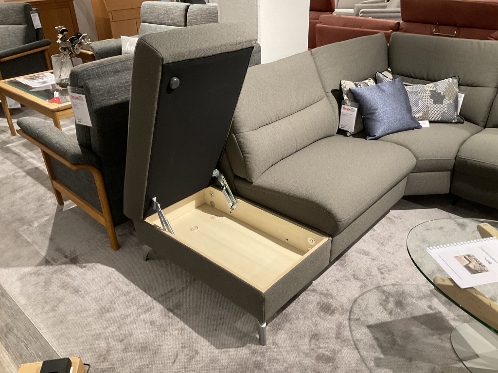 Stoff Q2 Fashion Grey Metallfuß Anthrazit Sitz Superlastic soft ca. 242 x 288 cm Sitzhöhe ca. 47 cm, Sitztiefe ca. 54 cm incl. Stauraum, motorische Herzwaage, Armteilverstellung Akku, Akkuüberzug, Ladestation