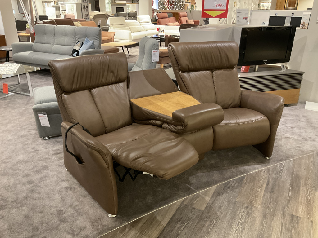 Longlife Leder 31 Zigarre mit Kontrastnaht Zwischentisch Wildeiche Fuß Alu Kopfteilverstellung manuell Superlastic soft ca. 201 cm breit Sitzhöhe ca. 46 cm incl. 2 motorische Cumuly- Funktion
