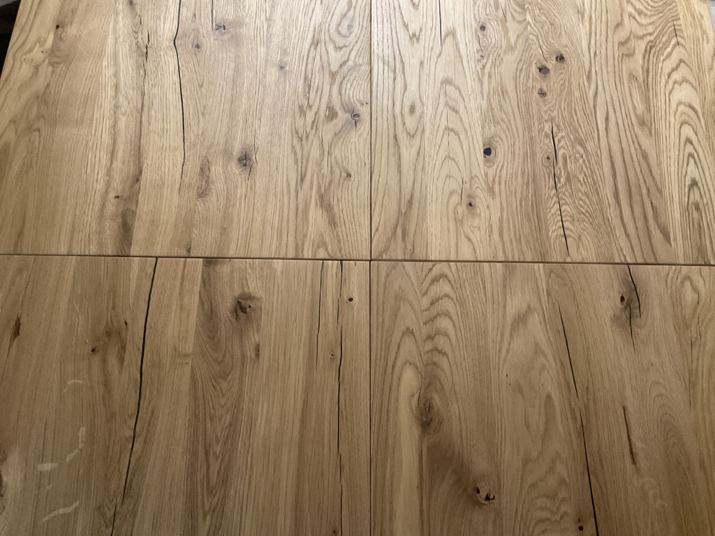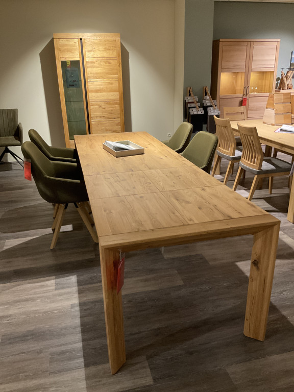 massiv Wildeiche crushed Oak geöltSchweizer KanteWangengestell mit Gehrungca. 90 x 180(230/280) cmGestellauszug mit 2 Klappeinlagen a 50 cm