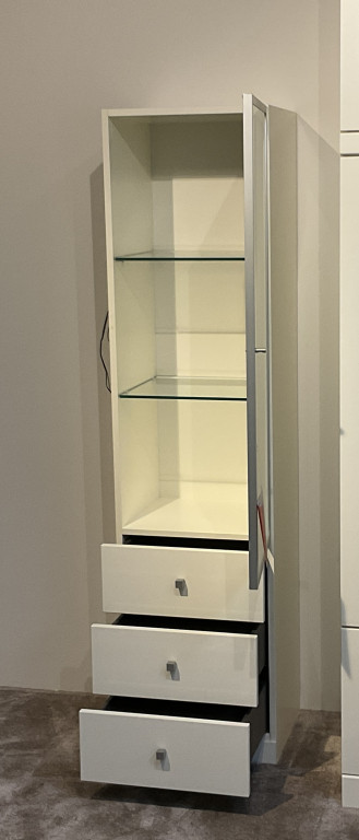mit 3 Schüben, Glastür Korpus: Weiß DekorFront Hochglanz WeißB/H/T:45x178x40 cm bestehend aus1x Glasbodenbeleuchtung 2er Ser1x Alu-Rahmen Tür matt