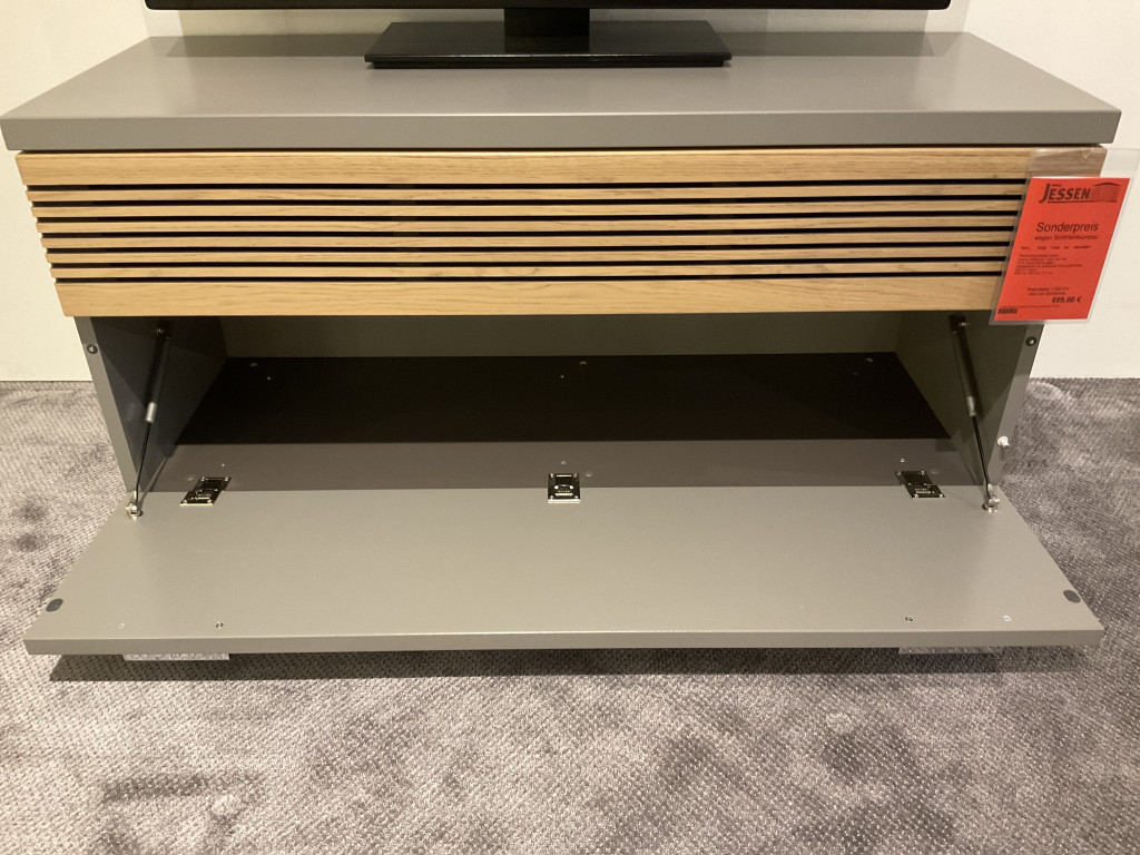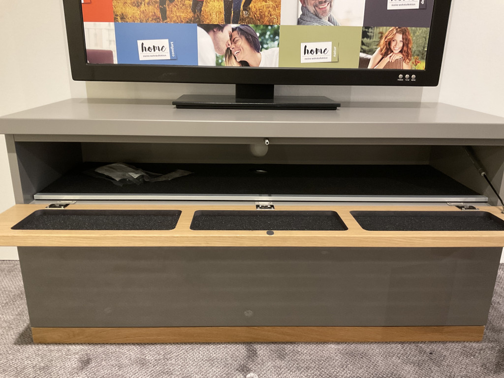 Lack Taupe matt/HochglanzAkustikblende und Sockelleiste Eiche SandGriff Chrom B/H/T: ca. 105 x 52 x 37,1 cm