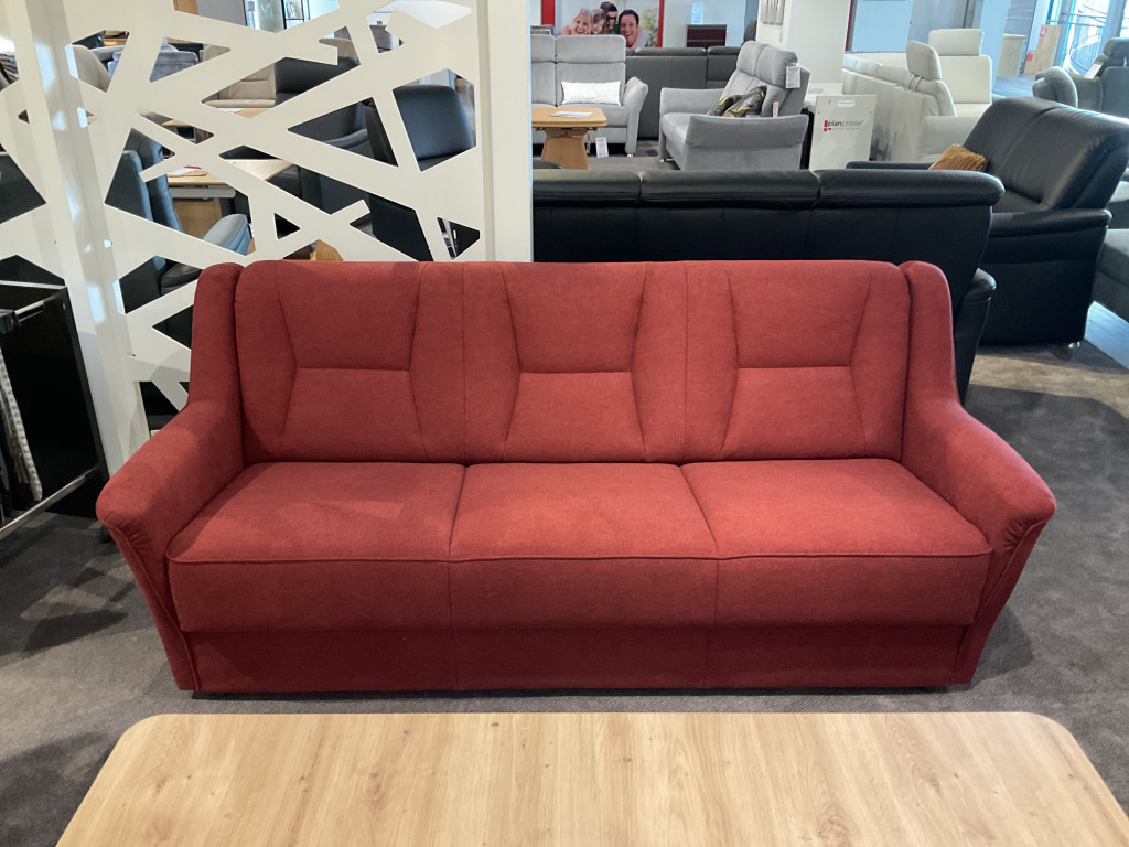 Bezug Comora Rubin Federkern, Sitzhöhe ca. 46 cm Rücken echt 1x Kipper B/H/T: ca. 195 x 86 x 85 cm 1x Sessel niedrig auf Rollen B/H/T : ca. 77 x 100 x 85 cm 1x Hochlehner auf Rollen B/H/T: ca. 77 x 86 x 85 cm