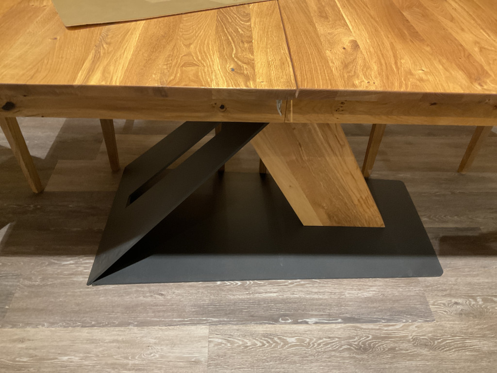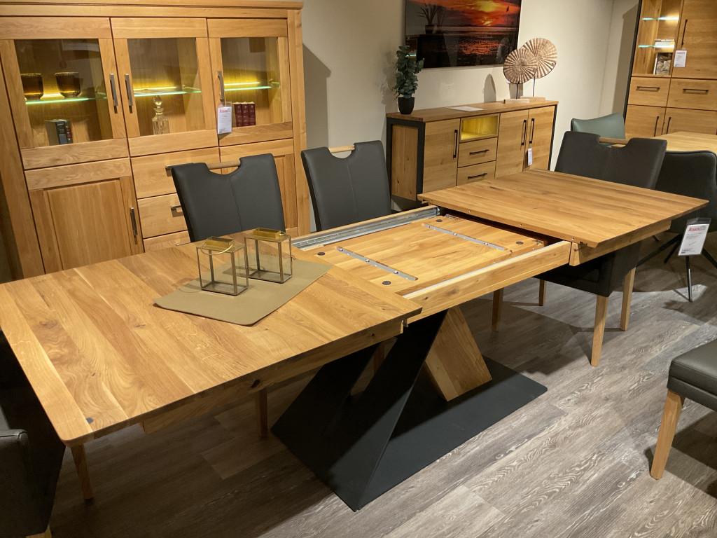 Balkeneiche massiv geölt Metallzäune und Bodenplatte Anthrazit mit Synchronauszug ca. 180(230) x 90 cm