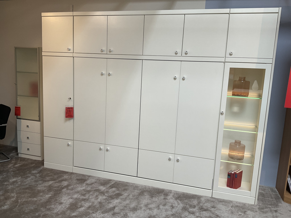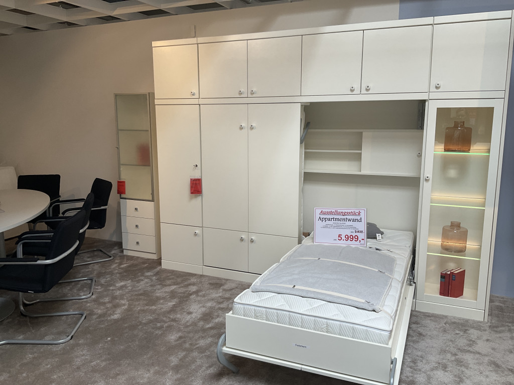 Bestehend aus:1xWäschschrank,1x Schrankbett mit 2einzelnen Betten mit Fedekernmatratze und Alubettfüßen1xLED Doppelbettleuchte 1x Vitrinenschrank1xLED Glasbodenbeleuchtung1x Anstellseite